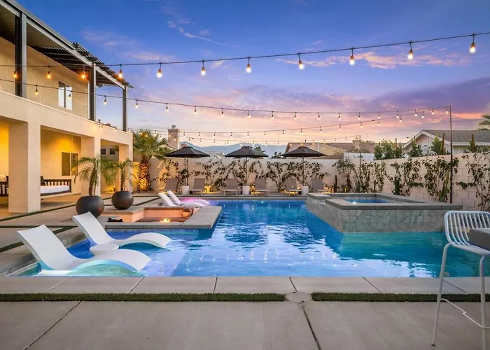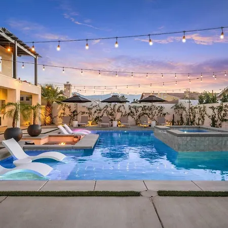 Die 5-Zimmer- Desert Skyline Luxury Pool Home With Sunken Firepit Area befindet sich in einer Entfernung von circa 15 Fahrminuten von St. Francis of Assisi Catholic Church entfernt und bietet einen einen Jacuzzi. Die Villa bietet einen Außenpool sowie Billard für aktive Gäste.